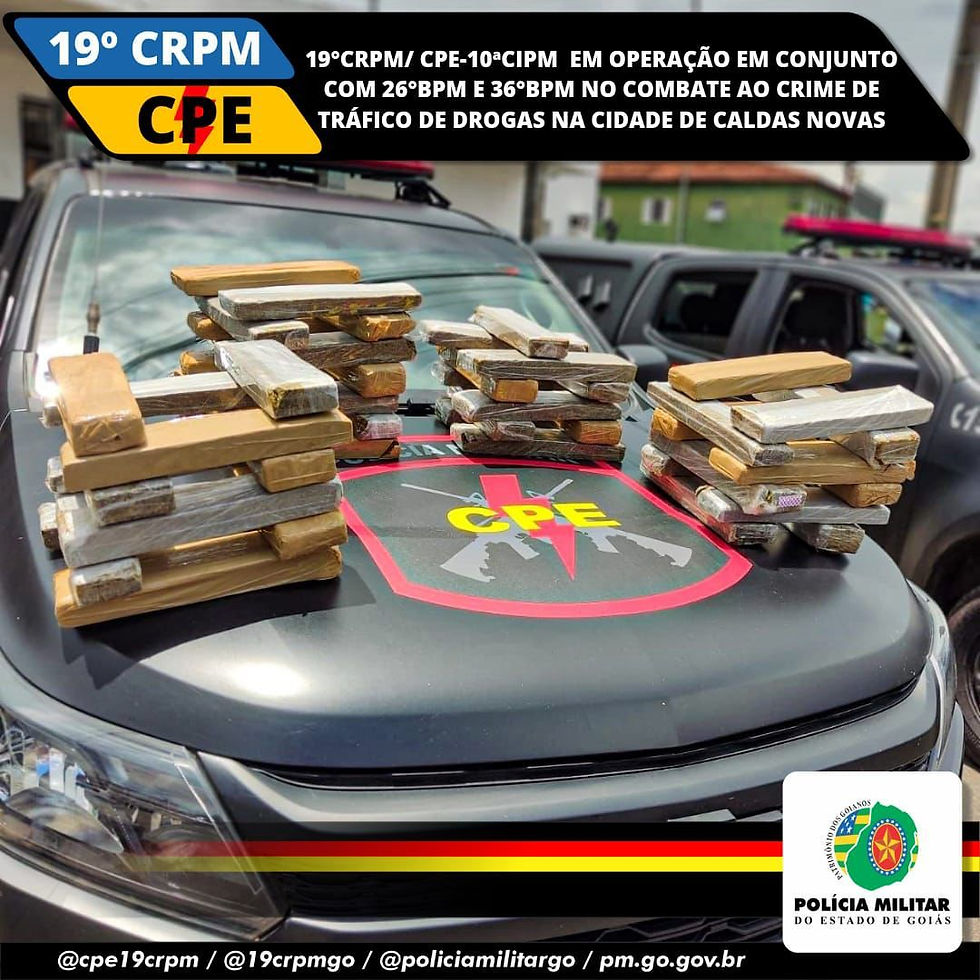 Um carro com 40 quilos de maconha, distribuídos em mais de 30 tabletes, foi apreendido em uma operação conjunta da Polícia Militar (PM-GO) através das equipes de Patrulhamento Especializado (CPE) do 26º Batalhão de Polícia Militar de Caldas Novas, 36º BPM de Morrinhos e 10° CIPM- CPE Companhia de Patrulhamento Especializado, nesta quinta-feira (03), no Povoado Nossa Senhora de Fátima ( Grupinho). O veículo vinha de Goiânia, para Caldas Novas.